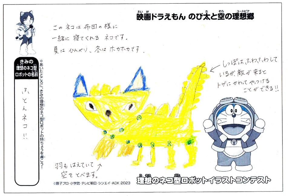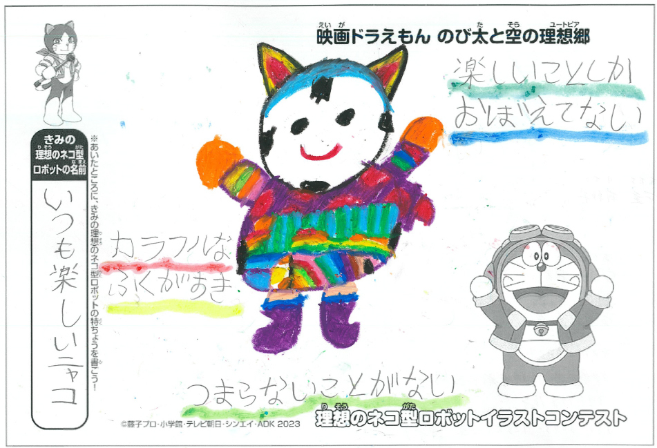 <郵送でのご応募> 〒171-0052 東京都豊島区南長崎3-1-5 株式会社浅田飴 映画ドラえもん 「理想のネコ型ロボットイラストコンテスト」係 |