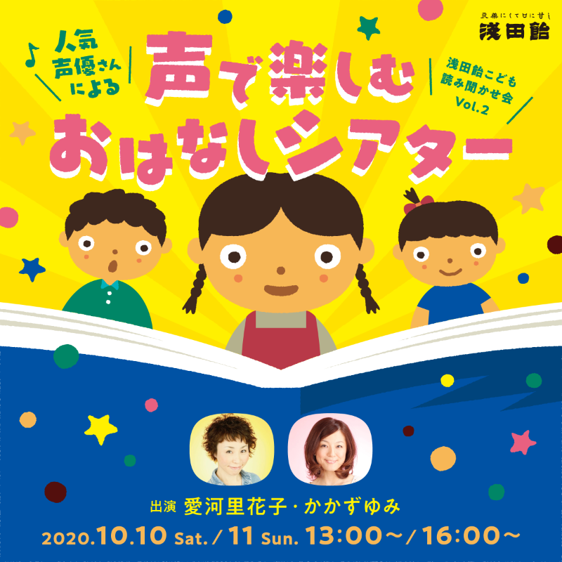 | ■公演日時 | 2020年10月10日(土)13時~/16時~ 2020年10月11日(日)13時~/16時~ ※45分前に開場いたします。画面表示の名前をお子さんの下の名前(ひらがな)にしてお待ちください。 ※公演時間は60〜80分を予定しております。 |