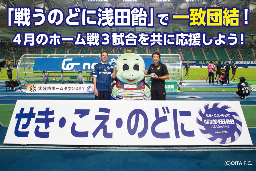 なお、期間中「戦うのどに浅田飴」の売上金の一部を、クラブ運営・強化費及び新型コロナウイルス感染症対策支援等として日本赤十字社大分県支部に寄付させていただきます。