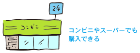 製造には国の承認が必要ですが、医薬品と違い、販売には許可がいらないため、コンビニやスーパーなど多くのお店で買うことができます。医薬品に比べて効き目は限定的ですが、手軽に買えるのが魅力的ですね。