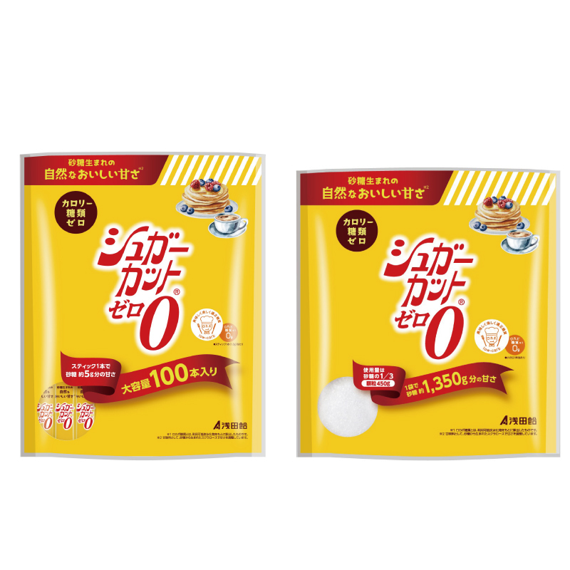「シュガーカットゼロ」はぶどう糖を発酵して得られるエリスリトールと、砂糖から生まれ、砂糖に近い自然な甘味質を有するスクラロースを原料としています。