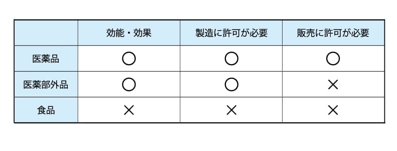 製造には国の承認が必要ですが、医薬品と違い、販売には許可がいらないため、コンビニやスーパーなど多くのお店で買うことができます。医薬品に比べて効き目は限定的ですが、手軽に買えるのが魅力的ですね。