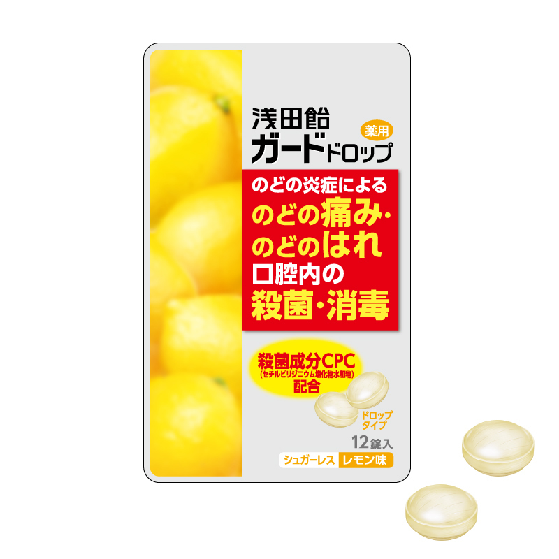「浅田飴ガードドロップ」は、殺菌成分CPC(セチルピリジニウム塩化物水和物)を配合した、つらいのどの痛みやはれに効く指定医薬部外品(口腔咽喉薬)です。